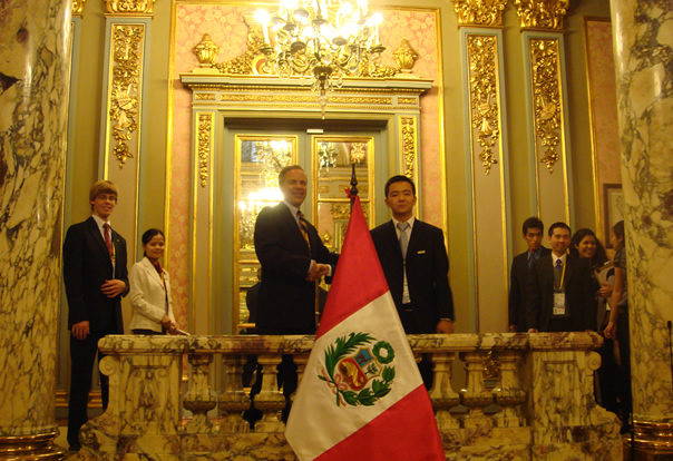背景介绍: “APEC 未来之声 ” 旨在为代表亚太地区未来的青年一代提供机会,让他们走出教室,通过亲身体验,了解APEC协调合作机制,与 APEC 政商界人士正面交流,拓宽其全球化视野,培养 APEC 地区的青年领袖。 APEC 组委会自 APEC 峰会创立以来,同期都会举办 “APEC 未来之声 ” 活动。邀请来自各成员体的学生代表和指导老师列席 APEC 峰会,与 APEC 地区的政府首脑、高级政府官员和工商界领袖展开非正式的采访与对话。杜竞强同学经过“ APEC 未来之声”中国赛区历时近三个月的层层选拔,最终与来自清华,人大,北师的三名优秀学生脱颖而出,代表中国大学生出访秘鲁。