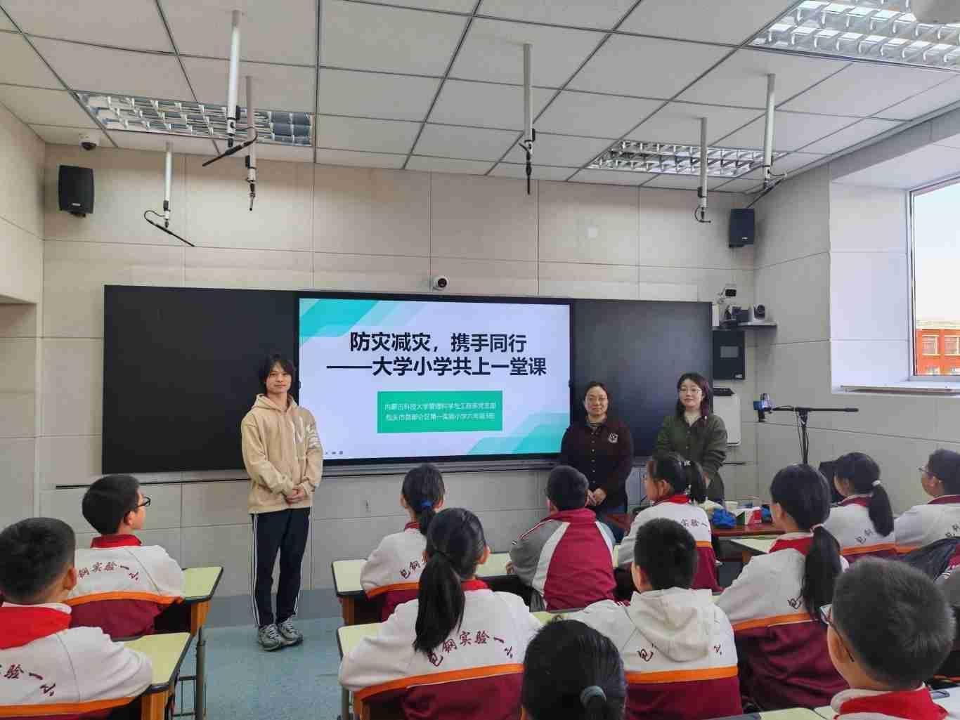 2024年12月9日下午,beat365正版唯一官网管理科学与工程系党支部联合包头市昆都仑区第一实验小学六年级三班在包头市第一实验小学录播教室开展了一场名为“防灾减灾,携手同行,大学小学共上一堂课”科普宣讲活动。