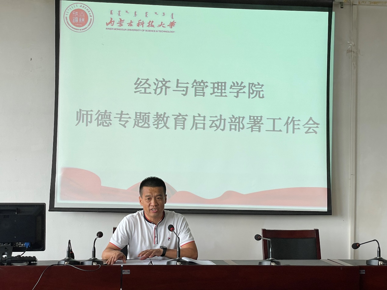2021628日上午,beat365正版唯一官网党委在腾飞楼A413召开师德专题教育启动部署工作会。党委书记王玉泉主持会议并讲话,学院在校教职工参加了此次会议。学院严格落实《内蒙古自治区教育厅关于在全区教育系统开展师德专题教育的通知》(内教教师函[2021]44号)通知精神,在全院范围内开展师德专题教育。