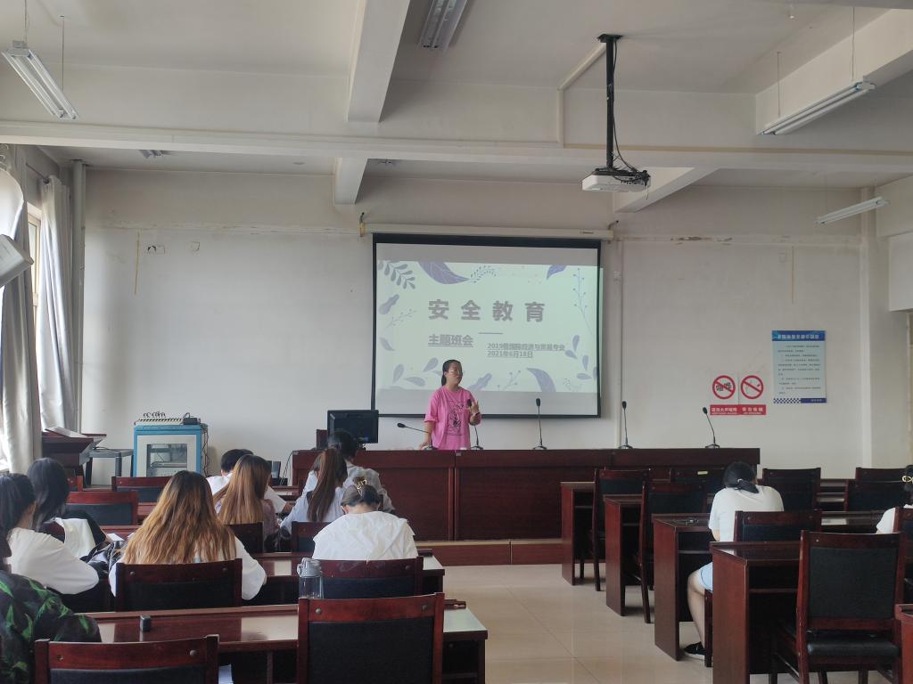 2019级国际经济与贸易专业于2021618日在腾飞楼A413开展防诈骗·校园安全教育主题班会。
