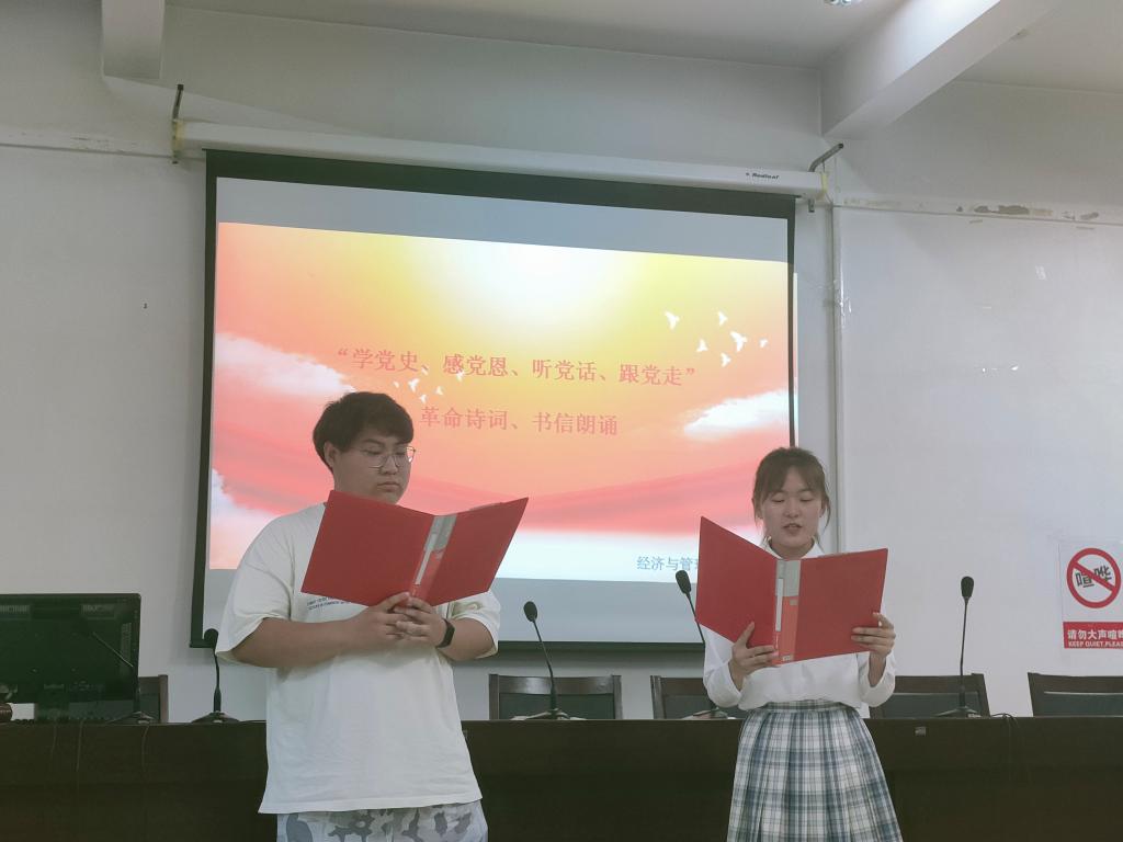 为推进党史学习教育进班级,做到学史明理、学史增信、学史崇德、学史力行,切实增强“四个意识”坚定“四个自信”、做到“两个维护”,按照《beat365正版唯一官网党史学习教育工作方案》安排,学院级特开展“学党史、感党恩、听党话、跟党走”革命诗词、书信朗诵活动。