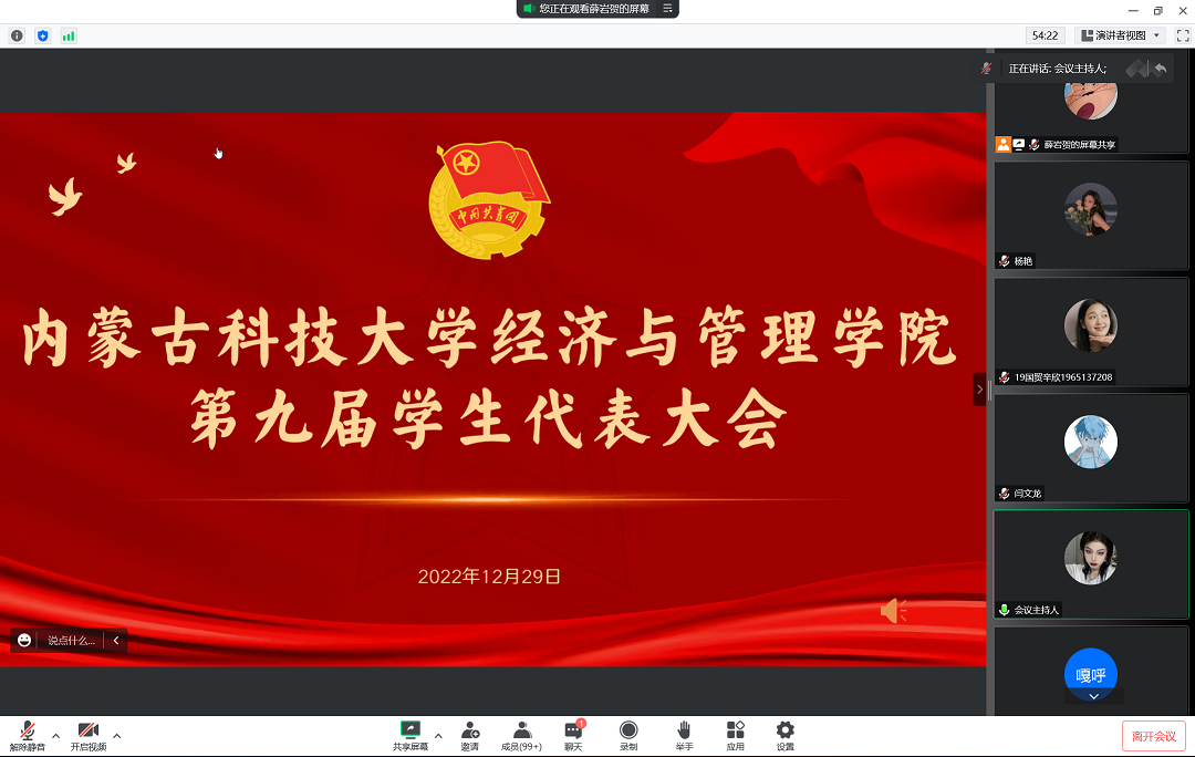 为积极联系学生、服务学生,实现学生干部队伍可持续发展,beat365正版唯一官网于2022年12月29日下午于线上召开第九届学生代表大会。8个代表团175名学生代表学院2019-2022级学子参会并行使权利。学团负责老师张雪薇、乌云塔娜参加会议。