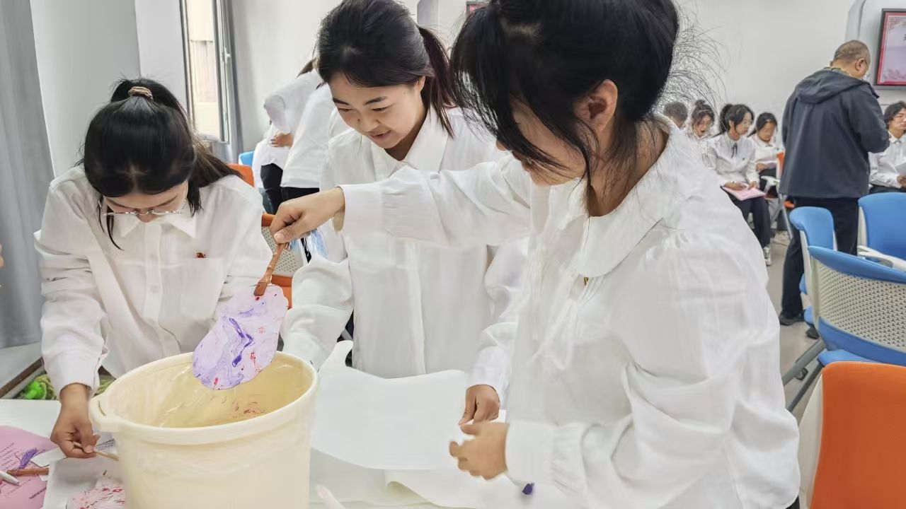 交流互动环节趣味十足。漆扇制作让团员们亲身感受传统文化魅力,在实践中加深对传统文化的热爱。