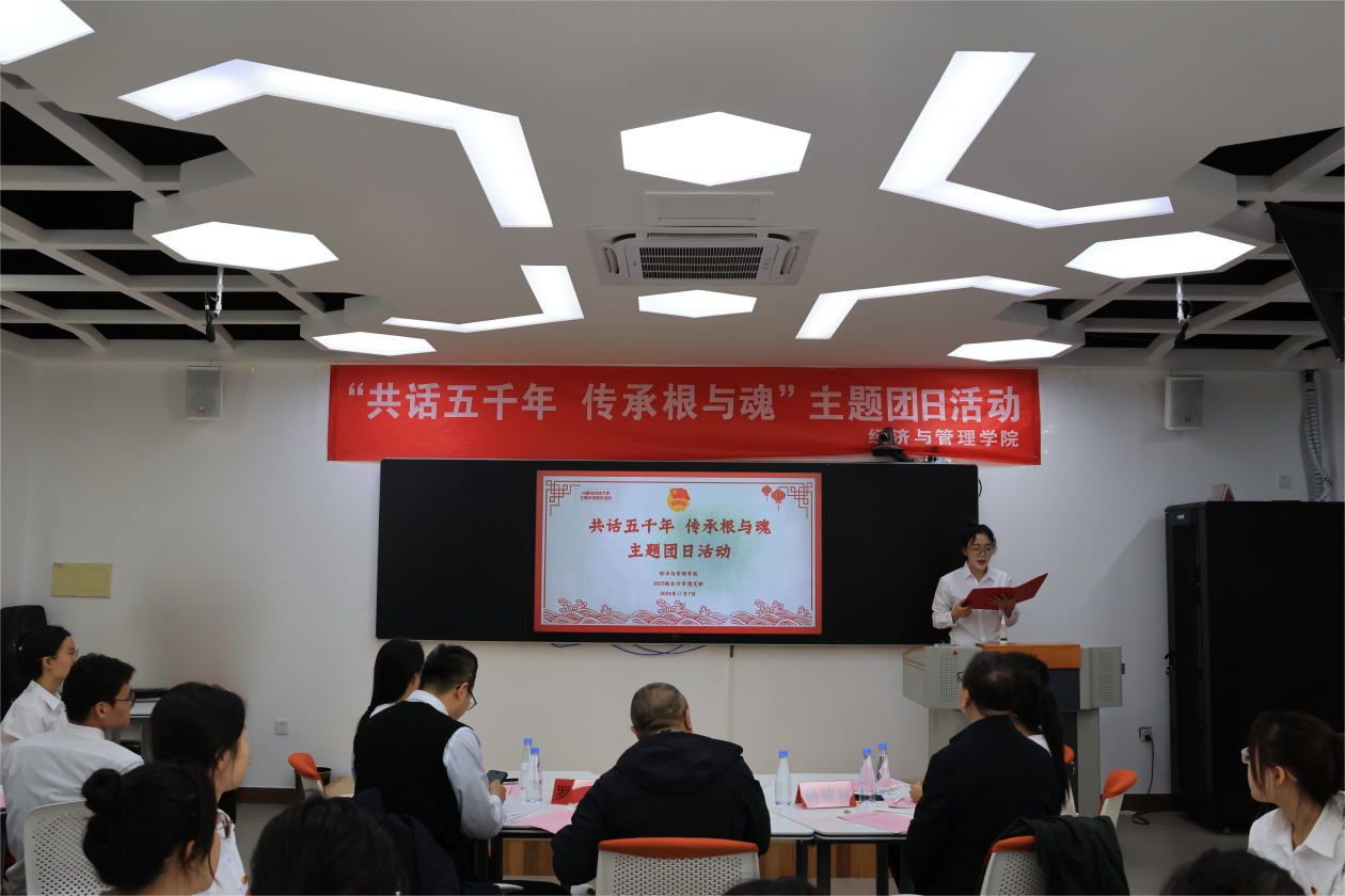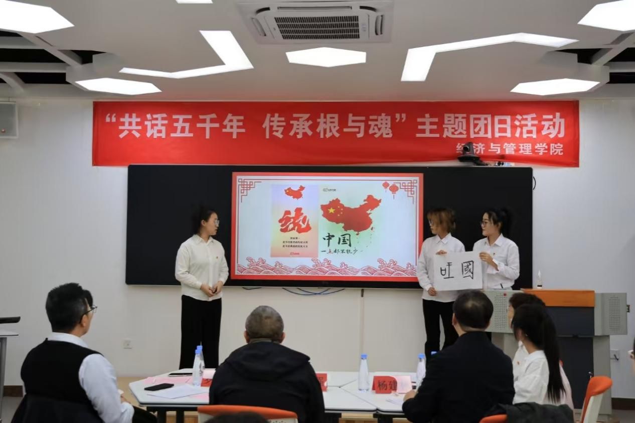为深入学习贯彻习近平文化思想,贯彻落实好《习近平与大学生朋友们》的学习宣传工作,组织动员团员青年加深对中华优秀传统文化的传承发展,引导团员青年深刻理解“两个结合”的重大意义。11 月 7 日由校团委主办,beat365正版唯一官网承办,2023级会计学专业团支部开展了“共话五千年 传承根与魂”示范主题团日活动。校党委副书记杨建林、校团委书记罗强、beat365正版唯一官网书记张永强出席此次活动。