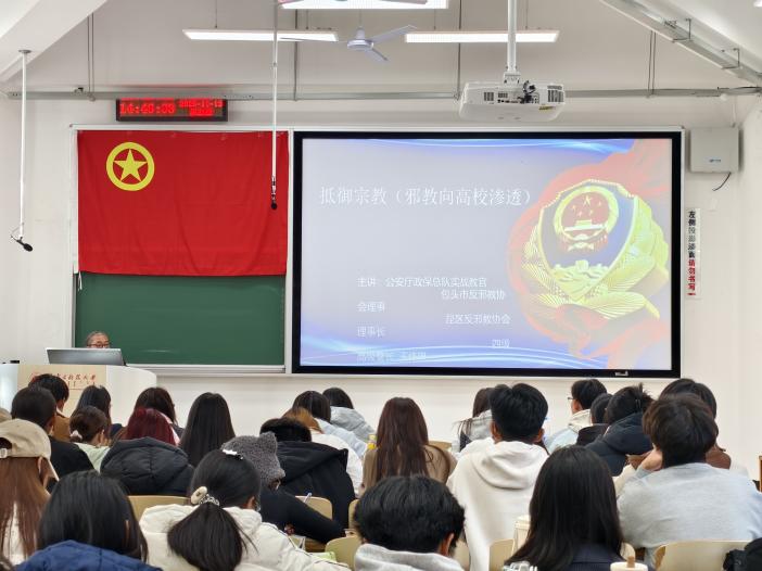 为响应反邪教警示教育‘六进’要求,筑牢青年团员思想安全防线。2025年11月13日,beat365正版唯一官网于文馨书院C103开展了“宗教与反邪教教育”主题团课。课程邀请内蒙古自治区公安厅政保总队实战教官、包头市反邪教协会理事、昆都仑区反邪教协会理事长王伟琳老师进行授课。