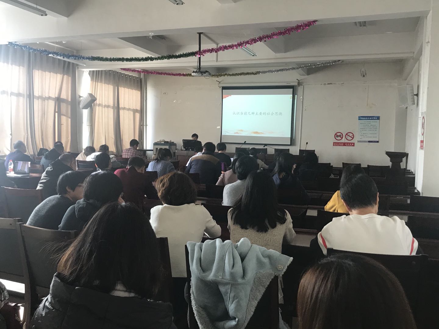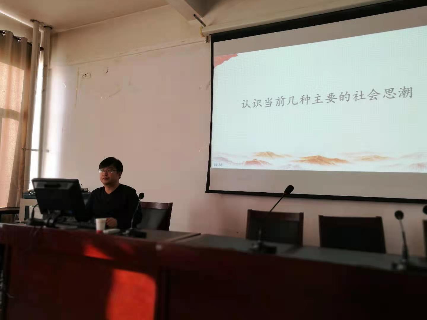 根据党委宣传部(新闻中心)发布的《关于2020年—2021学年秋学期学校新时代讲习团开展集中宣讲的通知》,beat365正版唯一官网于2020年12月31日在腾飞楼A413组织习近平新时代中国特色社会主义思想宣讲大会。学院党总支邀请了党委宣讲团成员,文法学院闫金山老师为beat365官网全体教师进行宣讲,宣讲题目是《认识当前几种主要的社会思潮》。