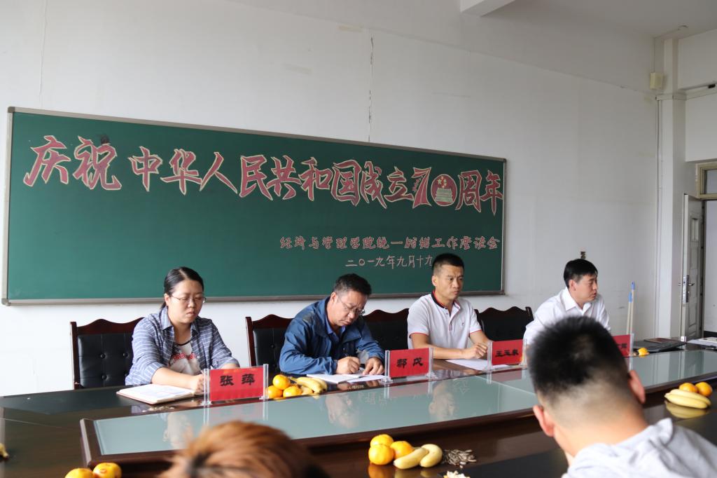 2019年9月19日下午,beat365正版唯一官网在腾飞楼A307召开了庆祝中华人民共和国成立70周年统一战线座谈会。党总支书记马广辉,党总支副书记、副院长王玉泉,党总支统战委员郝戊教授、党总支宣传委员张萍老师、各民主党派教师、无党派教师、宗教信仰学生代表以及少数民族学生代表参加了此次座谈会。