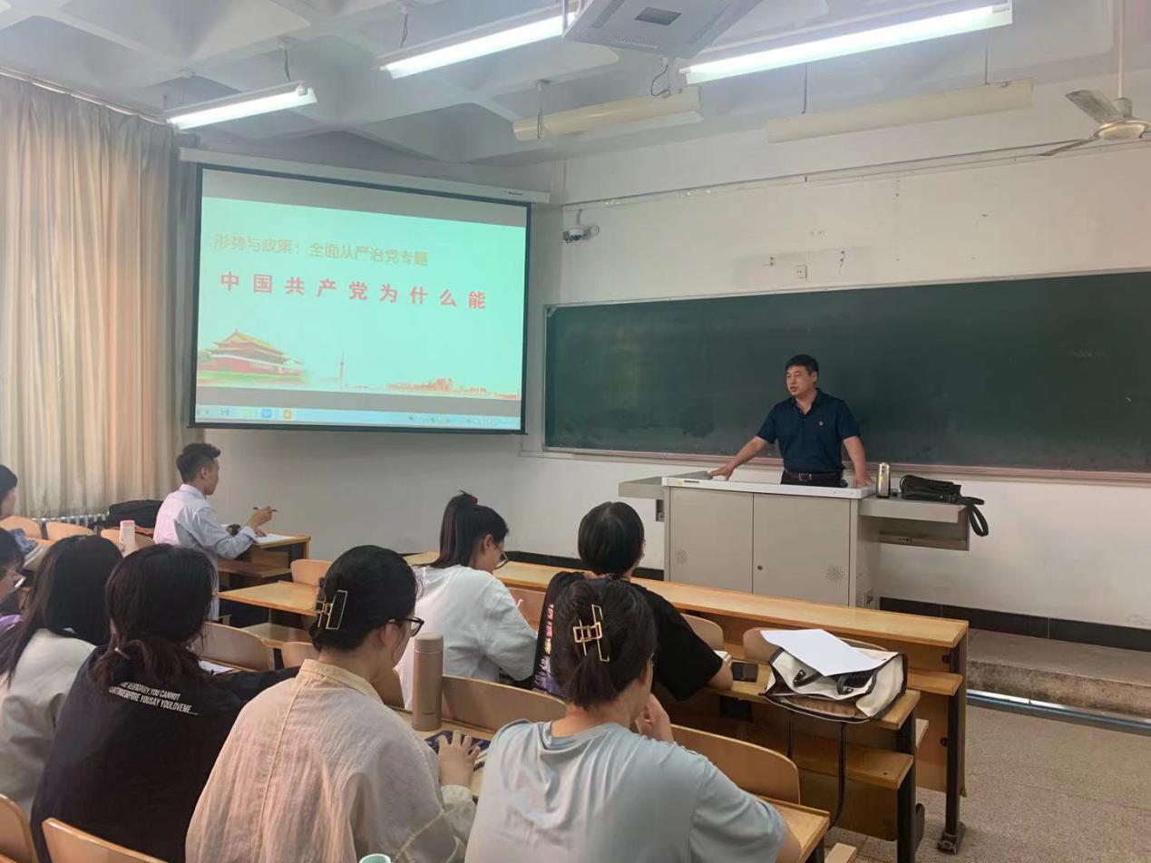 2021617日,马克思主义学院党总支书记马广辉在第二教学楼B110为beat365正版唯一官网工商201880名本科生讲授《形势与政策》课,讲课主题是:中国共产党为什么能。中国共产党从小到大、由弱到强,从一叶扁舟到巍巍巨轮,一百年间,党的面貌、国家的面貌、人民的面貌、军队的面貌、中华民族的面貌发生了前所未有的变化,从站起来到富起来,再到强起来,取得了举世瞩目的伟大成就。课程从有远大理想追求、有科学理论引领、有选贤任能机制、有严明纪律规矩、有自我革命精神、有强大领导能力六个方面,阐释了中国共产党为什么能取得如此巨大的成就。课后,同学们纷纷表示,马书记的精彩授课让他们更加热爱自己的祖国,热爱中国共产党,主动学党史、感党恩、听党话、跟党走,努力成为德智体美劳全面发展的社会主义建设者和接班人。