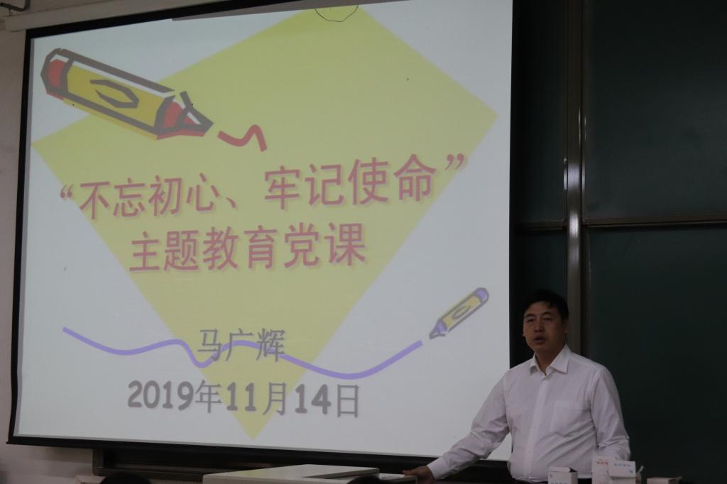 按照学校党委主题教育统一安排部署,20191114日,beat365正版唯一官网党总支书记马广辉同志在逸夫楼G101讲“不忘初心、牢记使命”教育专题党课。
