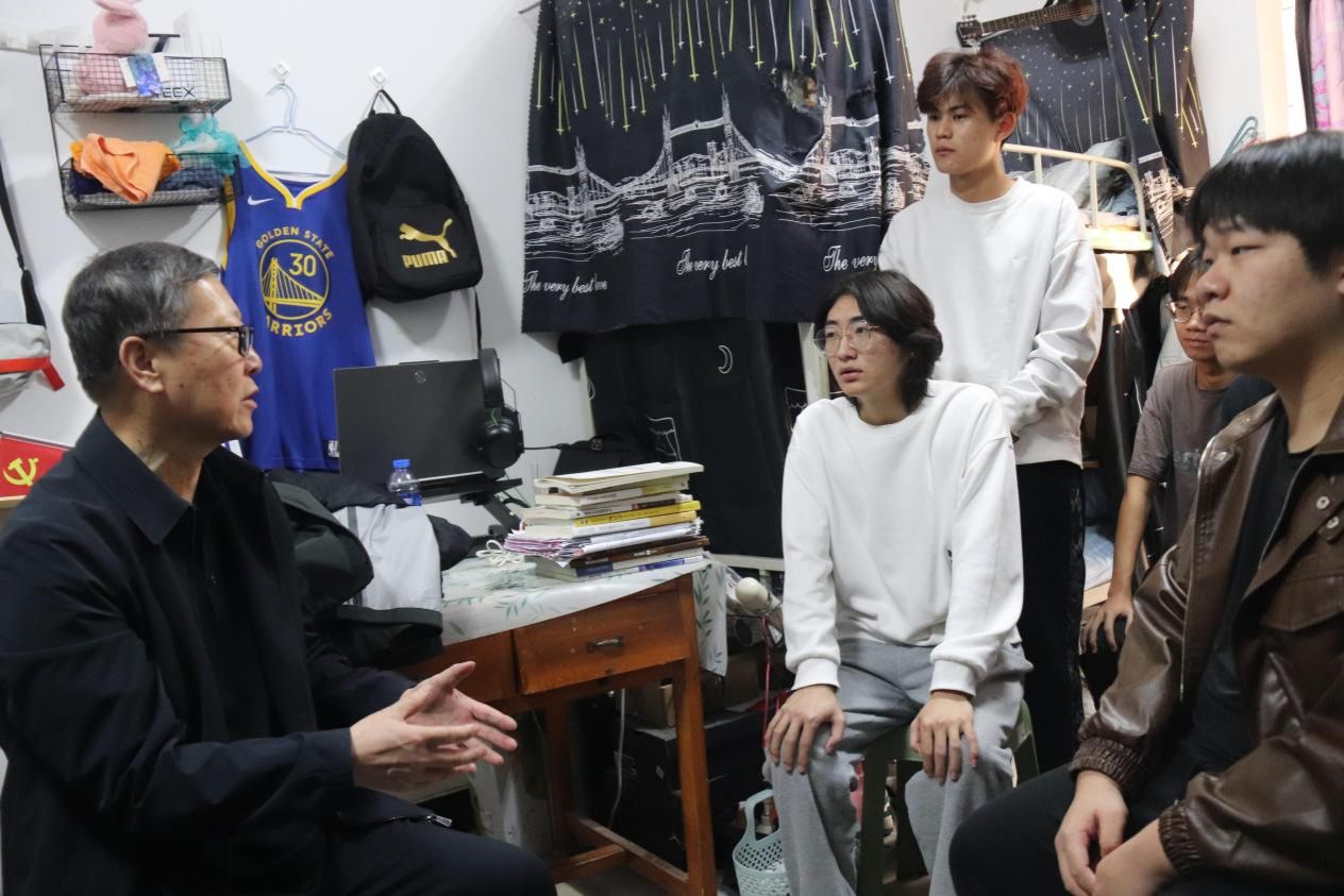 交谈中,杨建林认真听取了同学们对学校教育教学、校园生活、宿舍管理等方面的意见和建议,表示学校会尽力为大家提供更好的学习和生活环境,希望大家共同营造一个和谐、积极向上的宿舍氛围。