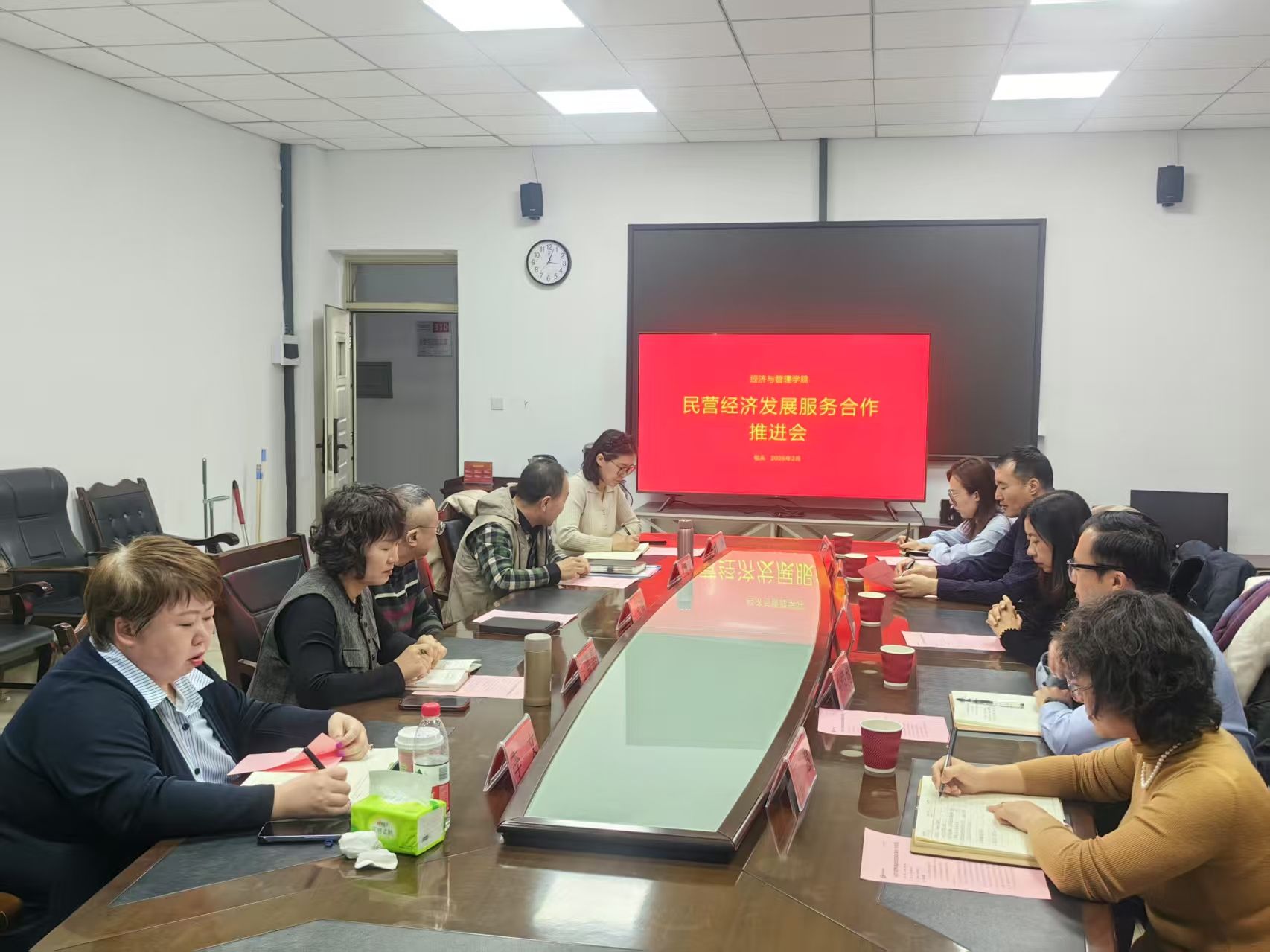 2月28日,民营经济发展服务合作推进会在腾飞楼A307会议室召开。学院与包头市民营经济发展服务中心就合作推进民营经济发展相关事宜深入开展交流研讨。市民营经济发展服务中心主任李文霞、副主任牛伟健,学院党委书记张永强、院长赵周华、副院长王嘉嘉参加会议。会议由赵周华主持。