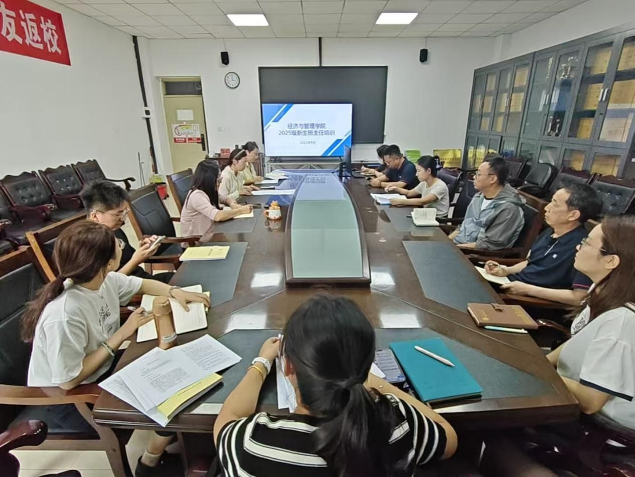 9月4日下午,学院在腾飞楼A307会议室举办2025级新生班主任培训会。副书记田芳、副院长孙斌,全体辅导员、新生班主任参加会议。