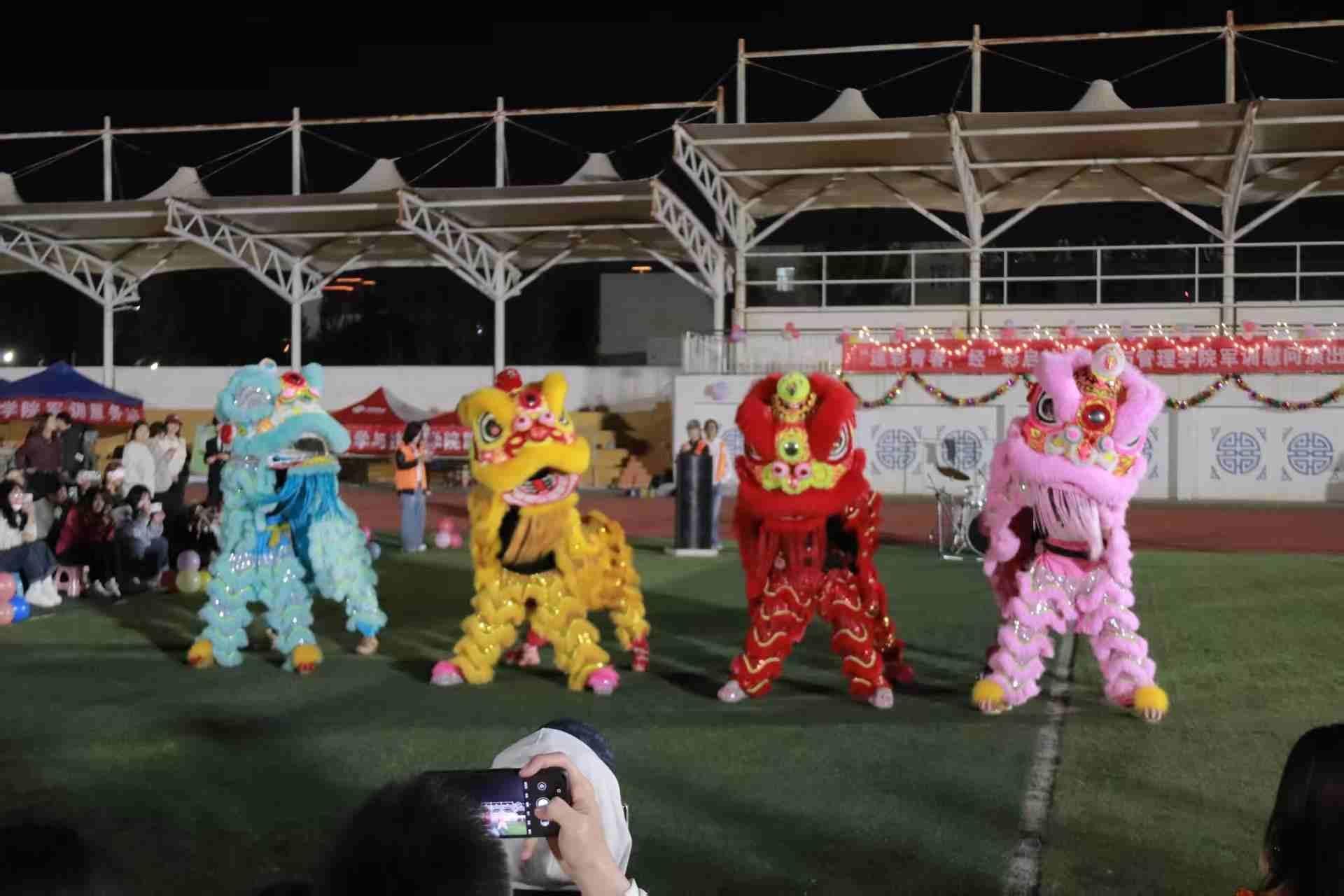 9月23日晚,学院在学校东区军训场地举办“迷彩青春,‘经’彩启航”军训慰问演出。演出经过学院文艺部、传媒中心联合校龙狮协会、腾飞鹿鸣乐队等多个社团精心策划编排,汇聚了龙狮、乐队、舞蹈、魔术等多种艺术形式,迸发出青春的热忱与创意的火花。演出现场气氛热烈,掌声经久不息。