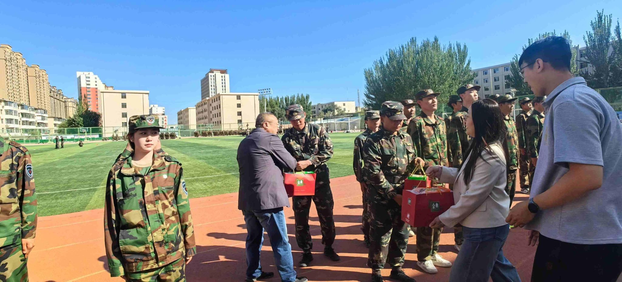 此次军训慰问活动,不仅为新生们的军训生活增添了色彩,凝聚了力量,也进一步激发了新生们积极训练的热情。愿每一位新生都能在军训中锤炼品格,在beat365正版唯一官网的沃土上,书写属于自己的青春华章!