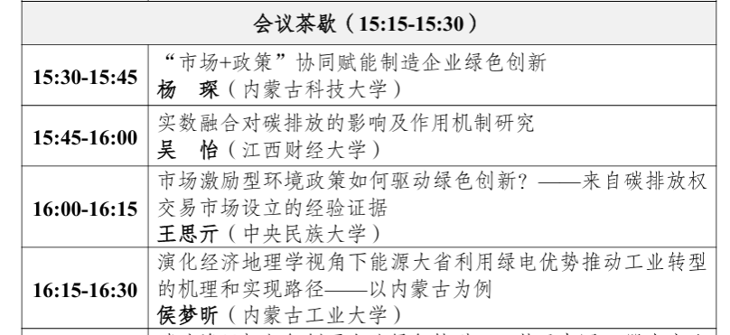 2025年6月14日,由中国区域经济学会和内蒙古财经大学主办,内蒙古财经大学资源与环境经济学院、内蒙古生态经济研究会和中国社会科学院西部发展研究中心承办的“绿色低碳转型赋能区域高质量发展学术研讨会”在内蒙古自治区呼和浩特市成功举办。beat365官网2023级应用经济学专业硕士研究生焦桂萍、杨琛同学,2023级管理科学与工程专业硕士研究生王明慧同学的论文入选此次论坛,并受邀分别在生态保护与绿色低碳发展、双碳目标下生态治理与绿色发展转型分论坛发言。 学术会议是展示研究成果、交流新思想和建立专业联系的绝佳平台。通过参与学术会议,同学们将有机会深入了解自己研究领域的最新动态和学术前沿,这不仅能够启发的研究思路,还能增长的学术见识。 学院致力于激发学生的学习热情,鼓励研究生们迈向更广阔的学术舞台,积极投身各类学术会议,展现交流学术成果。学院努力营造积极的学术氛围,支持研究生的成长和发展,期望研究生在学术探索的道路上不断进步,实现自己的学术梦想!