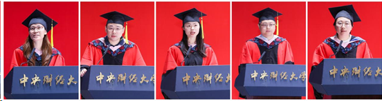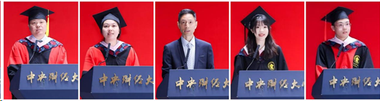 2021级金融学专业本科生林予淳、2022级金融学硕博连读生李梦如,分别代表本科和研究生毕业生发言。两位毕业生代表均回顾了珍贵的“中财金院记忆”,向学院表达了感恩与感谢,表示今后将带着在中财校园里获得的宝贵的财富,带着母校赋予的格局与视野,传承发扬中财龙马精神,勇敢去追逐自己的梦想,服务于人民福祉与社会进步,绽放属于金院人的光芒。